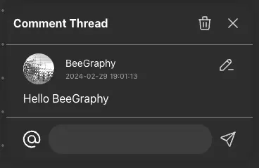 Write the comment in the opened field and press the send button to create it.