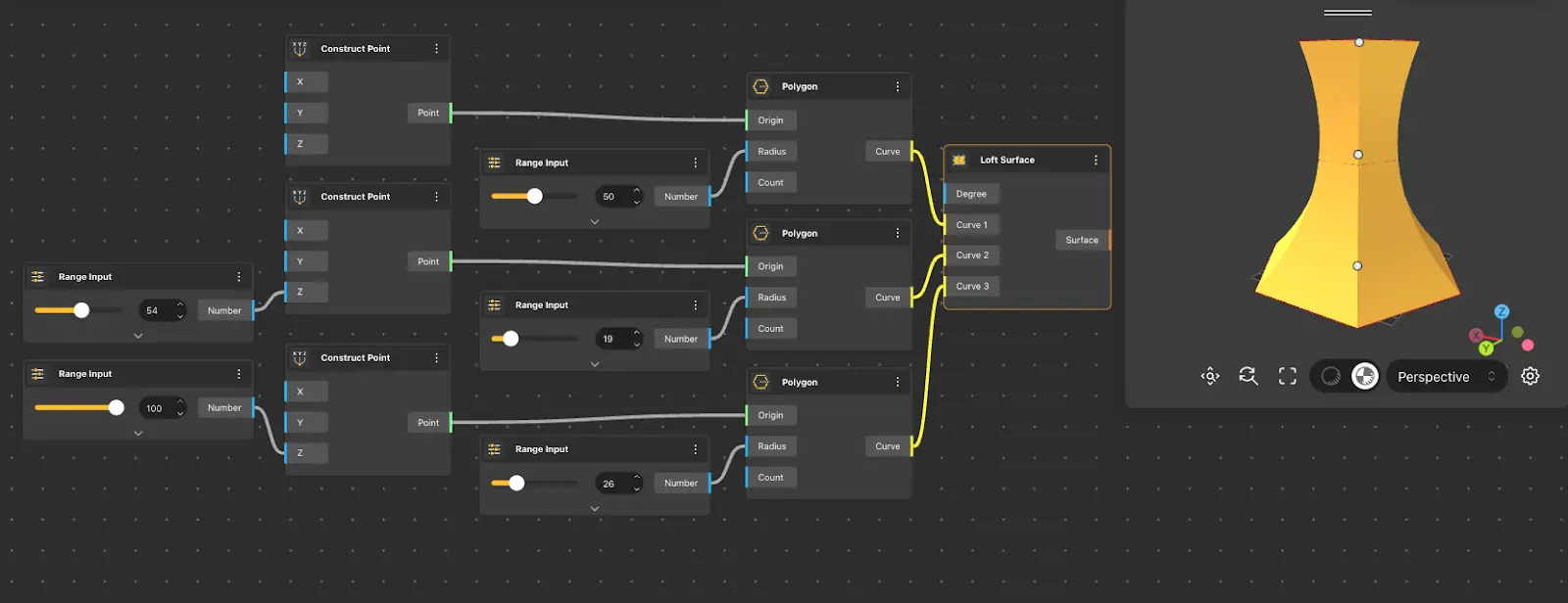The Surface From Points node takes a set of points as input and generates a surface constructed from those points.