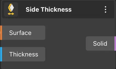 The Side Thickness node takes a surface as input and solidifies it by adding the specified thickness.