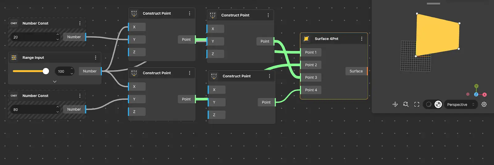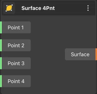 The surface 4Pnt node receives 4 points and constructs a surface with the help of these points.